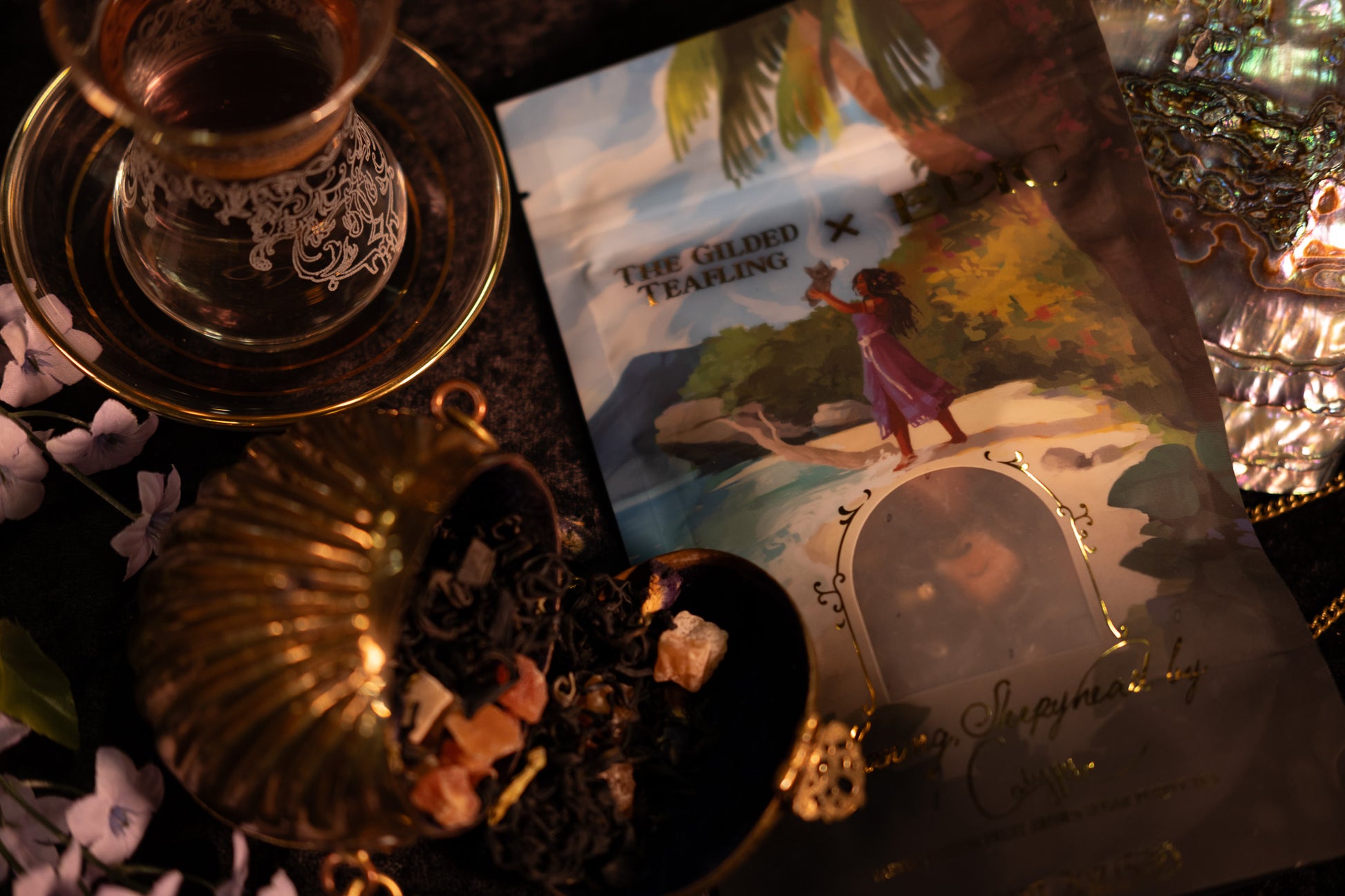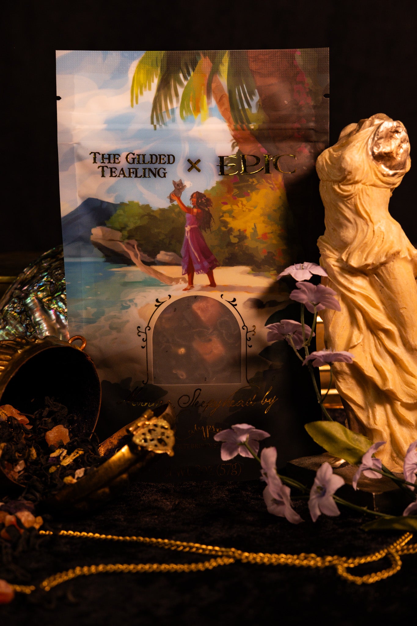 It’s a little cup of paradise. The base is a beautiful Kenyan purple tea, the kind that glows when the light hits it just right, like the ocean at dusk. I also added brown sugar because it captures the warmth of the sand when it’s been kissed by the sun all day, and passionfruit because... well, because it's bright, and golden, and a little intense—like me. Lastly, the papaya is there for balance. It’s sweet and gentle and safe, like an eternal island sunrise…