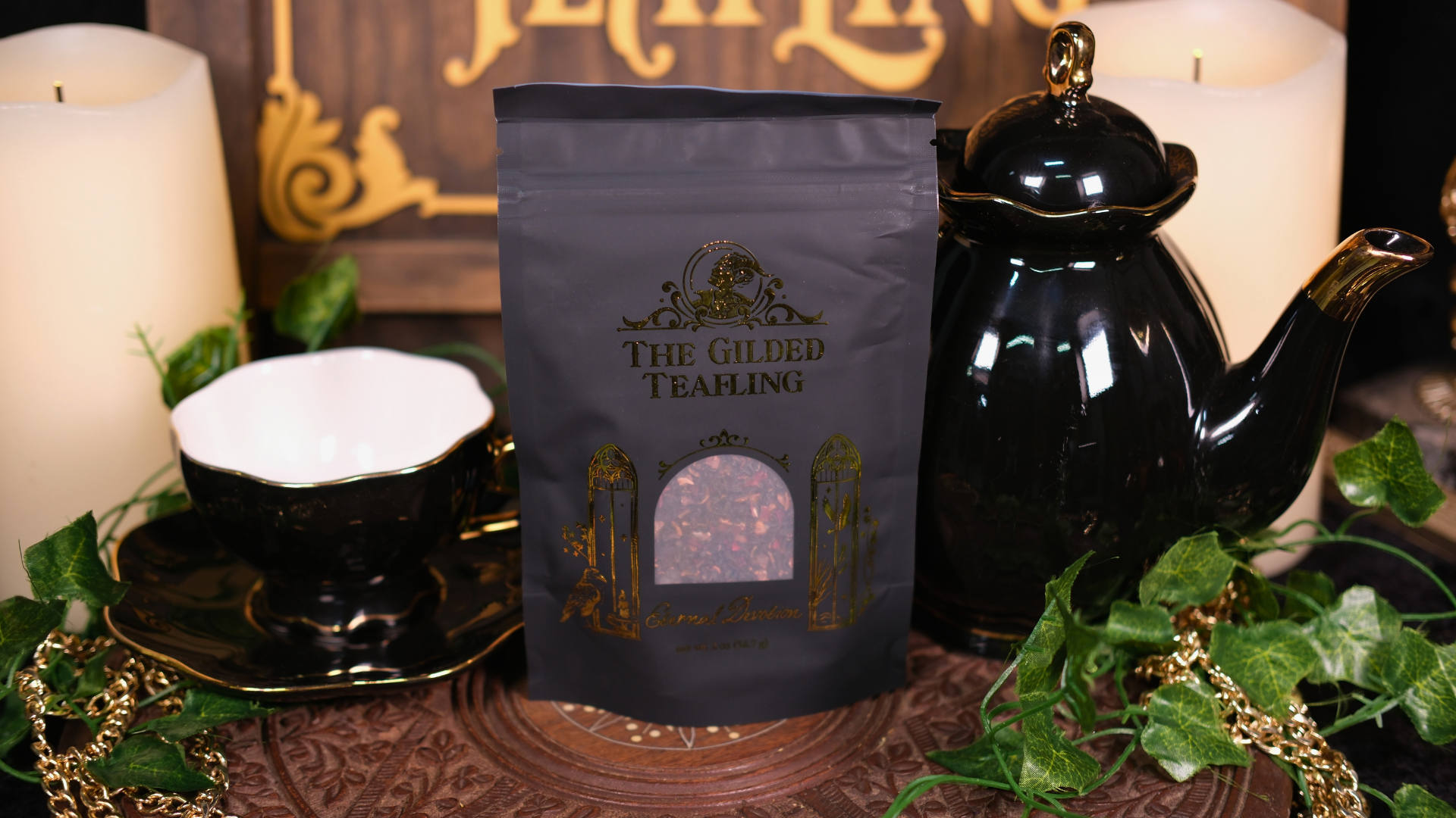 You find yourself amidst moon-drenched balconies and secluded chambers, where love, longing, and immortal desire intertwine. This blend offers more than just a simple brew—it is the embodiment of love that knows no bounds. One drink of this tea and you are destined to find yourself as a sweet drink for your own eternally devoted lover.